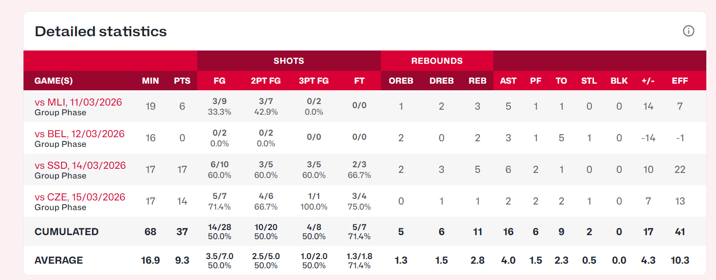 虽然前两场比赛王思雨发挥一般,但对阵南苏丹10中6+三分5中3,拿到17分6助攻5篮板;对阵捷克7中5+三分1中1拿到14分2助攻1篮板1抢断,31岁的老将才是这支女篮的真领袖。
